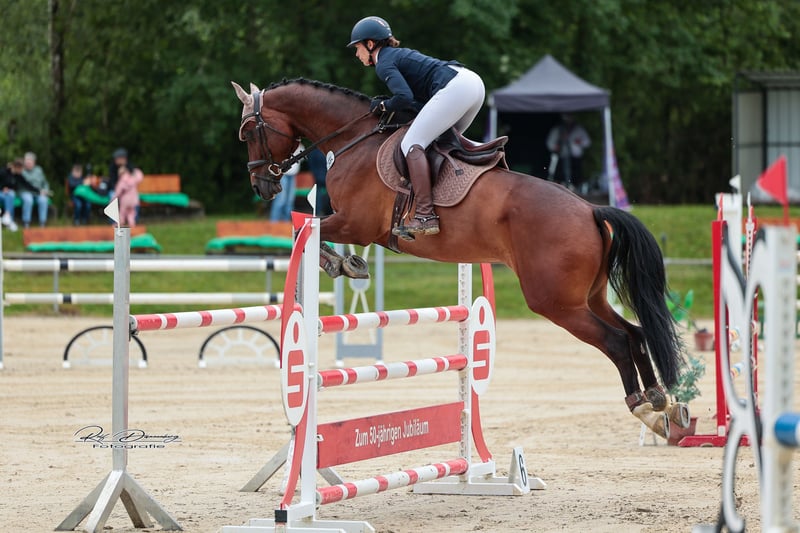 Spitzname: Cookie Alter: 10 Jahre Disziplinen: Springen, Dressur, Vielseitigkeit Springen: Ist seine Hauptdisziplin. Im Parcours fühlt er sich sehr wohl und möchte keinen Fehler machen. Hier ist er vor allem in der Klasse L* bis M Zuhause. Bis zu dieser Klasse konnten wir zusammen konstante Erfolge in der Klasse, L & M erreiten. In der schwere Klasse zeigte Cookie, unter einem erfahrenen Reiter, sowohl im Training, als auch in seinem ersten S Springen die passende Einstellung und Qualität. Dressur: Auf dem Turnier wurde er bis zur Klasse A* vorgestellt und platziert. Im Training zeigt er Lektionen der Klasse L. Zudem lässt er sich sehr leicht arbeiten/ gymnastizieren und macht eine menge Freude in der tgl. Arbeit. Vielseitigkeit: erste Erfahrungen mit Geländehindernissen bis zur Klasse A. Rittigkeit: Cookie ist sehr fein in der Hilfengebung, leichtrittig, motiviert in der Arbeit und lernwillig. Charakter: Cookie ist ein sensibles und liebevolles Pferd mit viel Mut und Geist. Im täglichen Umgang zeigt er auch gerne mal seine verspielte Art und bringt einen zum Lachen. Er ist brav im Umgang und unkompliziert beim Schmied oder Transport. Er zeigt sich generell sehr unerschrocken, egal ob in einer neuen Umgebung, auf dem Turnier oder im Gelände (auch wenn man alleine mit ihm unterwegs ist). Haltung: Cookie ist seit 5 Jahren in meinem Besitz und hatte nur einen Vorbesitzer der ihn direkt vom Züchter gekauft hat Er kenn reine Sommerkoppelhaltung 24/7, Boxenhaltung mit Paddock und tgl. Weidegang von 4 - 8 Stunden, je nach Witterung. Zudem kennt er die Haltung in einer kleinen gemischten Herde. Medizinische Versorgung: Lückenloser Impfpass inkl. Herpes/ Equidenpass vorhanden/ regelmäßige physiotherapeutische Behandlungen, sowie tierärztliche Routineuntersuchungen, wie z.B. Zahnarzt. Eine AKU (April 2020, ohne Befund) ist vorhanden. Ultaco hat eine premium OP Versicherung, welche übernommen werden könnte. Weiteres: Cookie wurde schonend ausgebildet und zu Beginn seiner Ausbildung bei mir überwiegend ins Gelände geritten. Parallel dazu wurde spielerisch mit der weiteren Springausbildung begonnen. Er kennt neben dem Reiten die Arbeit an der Longe (auch mit Stangen und Cavalettis), Boden- und Handarbeit. Er ist verladefrom und lässt sich zum Training oder aufs Turnier gut alleine fahren und dort betreuen. Besonderes: Für mich gilt, dass Cookie ein liebevolles Zuhause in einer neuen Familie bekommt, wo sowohl sportliche Ziele als auch das Pferdewohl gleichermaßen wichtig sind. Hierzu zählen für mich ein regelmäßiger Weidegang im Sommer/ Auslauf im Winter, abwechslungsreiche Trainingsmöglichkeiten, sowie eine gute reiterliche Grundausbildung des Reiters. Videos können bei ernsthafter Anfrage versendet werden. Cookie wird aus privaten und beruflichen Veränderungsgründen verkauft. Für ein Probereiten eine Schutzgebühr von 30€ (Springen 50€) erhoben.