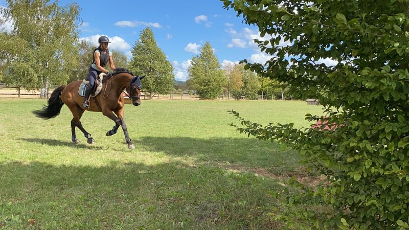 Nickname: Cookie Age: 10 years Disciplines: Show Jumping, Dressage, Eventing Show Jumping: This is his main discipline. He feels very comfortable in the course and wants to avoid making mistakes. He is primarily at home in classes L* to M**. He has achieved victories from class L to M*, with further successes up to class S*. Dressage: He has been presented and placed in competitions up to class A*. In training, he demonstrates lessons at class L. Additionally, he is very easy to work with/gymnastize and brings a lot of joy to daily work. Eventing: He has had initial experiences with cross-country obstacles up to class A. Rideability: Ultaco is very sensitive to aids, light to ride, motivated in work, and eager to learn. Character: Ultaco is a sensitive and affectionate horse with a lot of courage and spirit. In daily handling, he also likes to show his playful side and brings laughter. He is well-behaved in handling and uncomplicated with the farrier or during transport. He generally shows himself to be very unflappable, whether in a new environment, at competitions, or out in the field (even when out alone). Care: Ultaco has been in my possession for 5 years and had only one previous owner who bought him directly from the breeder. He is accustomed to pure summer pasture turnout 24/7, box housing with paddock, and daily turnout of 4 to 8 hours, depending on the weather. He is also familiar with living in a small mixed herd. Medical Care: Complete vaccination record including herpes/equine passport available/regular physiotherapeutic treatments, as well as routine veterinary examinations, such as dental care. A vetting (April 2020, no findings) is available. Ultaco has premium surgical insurance, which could be transferred. Additional Information: Ultaco has been gently trained and was primarily ridden out in the field at the beginning of his training with me. Concurrently, playful further training in show jumping was started. He is familiar with work on the lunge (including with poles and cavalettis), ground work, and handling. He loads well and can be transported alone for training or competitions and cared for there. Special Note: For me, it is important that Ultaco finds a loving home in a new family where both sporting goals and the well-being of the horse are equally important. This includes regular turnout in summer/winter exercise, varied training opportunities, as well as a good basic education for the rider. Due to his sensitive character, Ultaco is not a beginner's horse. Videos are available on ClipMyHorse and can be sent upon serious inquiry. Due to my upcoming vacation, viewings/trial rides will only be possible from October 22, 2025. Additionally, a fee of €30 (show jumping €50) will be charged for a trial ride, starting with grooming and saddling the horse together. Exact price expectations upon request.