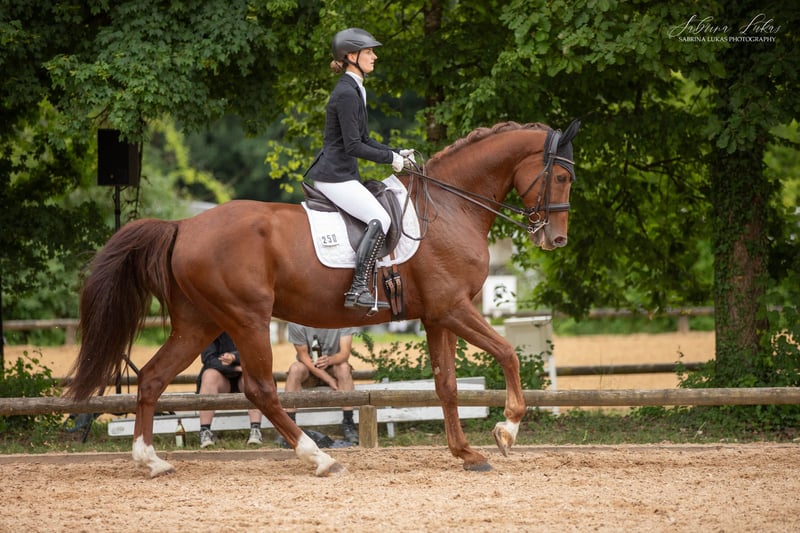 Leichtrittiger Dressurpartner mit viel Potenzial sucht Bestplatz Mit schwerem Herzen suchen wir für unseren wunderschönen Wallach Jelisco ein neues Zuhause. Jelisco ist ein äußerst leichtrittiges Pferd und vermittelt seinem Reiter immer ein sehr angenehmes, harmonisches Reitgefühl. In der Dressur zeigt er großes Talent für höhere Lektionen – insbesondere Seitengänge fallen ihm spielerisch leicht und machen ihn zu einem spannenden Partner, sowohl für ambitionierte Reiter als auch für erfahrene Freizeitreiter mit Freude an feiner Arbeit. Er überzeugt durch seine Rittigkeit und seine Einstellung immer alles richtig machen zu wollen. Als aufmerksames Pferd kann er sich auch mal erschrecken, weshalb wir ihn bei einem fortgeschrittenen Reiter sehen, der ihm die nötige Sicherheit gibt. Auswärts zum Training oder Turnier war er bisher immer ausgesprochen brav und auch ins Gelände zum Ausreiten geht er gerne. Ursprünglich aus der Vielseitigkeit kommend, liegt sein Fokus heute klar in der Dressur. Aufgrund seiner Sensibilität sehen wir ihn nicht im Springsport. Einwandfreie Röntgenbilder aus 2024 liegen vor. Wir wünschen uns für ihn einen einfühlsamen Menschen und einen absoluten Bestplatz, an dem er weiter gefördert wird und ankommen darf. Der Verkauf erfolgt aus persönlichen Gründen. Nur in beste Hände abzugeben. Probereiten 30 € (wird beim Kauf verrechnet). Bei ernsthaftem Interesse freuen wir uns über eine Nachricht.