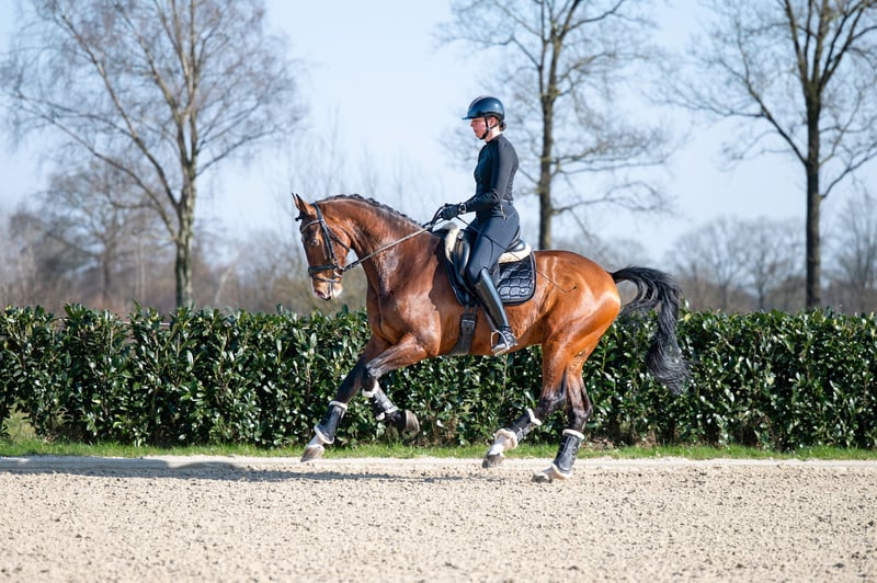 Don Tango B x Darnels I-Tango DH is an incredibly impressive gelding from 2013 with a height of 1.74m. He is a real eye-catcher with his brown color and makes an impression in the dressage ring. With his lineage from Don Tango B and Darnels, he has beautiful, grand movement and a lot of presence. With I-Tango DH, you have a reliable and stable partner in dressage.