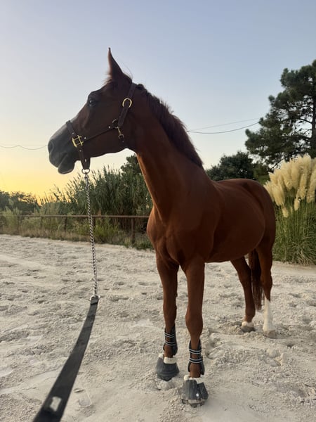 Elegant KWPN Gelding – Versatile Jumper KWPN gelding, born in 2010, standing at 168 cm. With his striking chestnut coat and well-balanced conformation, neto His well-ridden temperament and willingness to work make him an excellent choice for riders looking to compete at various levels or to continue his development in a supportive environment. He is a reliable and scopey jumper with a good technique over fences, combined with a calm and cooperative nature. His solid foundation and experience make him suitable for riders aiming to progress in the sport, whether at amateur or professional level. This KWPN gelding is healthy. He has been carefully maintained and is easy to handle both on and off the showground. For more information or to arrange a viewing.