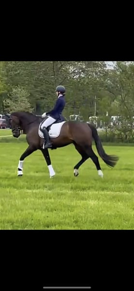 For sale: Reliable dressage gelding Floyd (sire: Lexicon, born 2010, 17.4 hh) Floyd is a true all-rounder with a gentle temperament. He has been trained and competed up to Z-level in dressage. Although he has been less active in competitions over the past two years due to his rider's studies, he has been consistently retrained at his level. He is now back to competing more frequently and always gives his best. In addition to his talent in the dressage arena, Floyd also enjoys jumping. He is very well-behaved; easy to handle for grooming, veterinary visits, and farrier work. In the herd, Floyd is friendly and social; he shares a pasture with two mares. Thanks to his calm, reliable nature, he is also ideal for riders transitioning from pony to horse, and even young riders can confidently ride him out. We have owned Floyd for over six years with great pleasure. We purchased him as a training horse, and during these years, I have learned a lot from him and enjoyed every moment. I hope his new rider or rideress will enjoy and learn from him just as much as I have. In short: Floyd is an honest, willing, and sweet horse that works hard every day and brings his rider a lot of joy, both in the arena and at home. Clinically and radiologically approved in 2019; re-approval possible upon request. 📍 Location: Friesland 📞 For more information, contact via WhatsApp or call: 0629926344