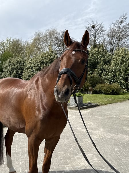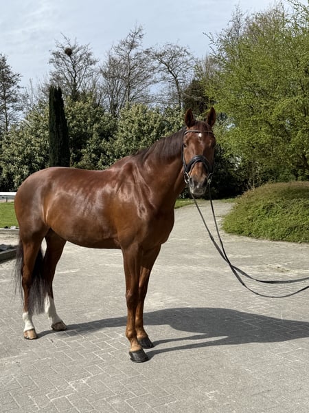 Zum Verkauf angeboten: Figo ist ein 16-jähriger KWPN-Wallach (ca. 1,73 m), der auf der Lichten Tour Niveau ausgebildet wurde und im ZZ-Licht vorgestellt wurde. Ein angenehmes Pferd mit solider Basis und viel Reitbarkeit. Figo ist ein williges und braves Pferd, das stets zuverlässig seine Arbeit verrichtet. In den letzten Jahren wurde er von einer älteren Reiterin geritten und hat sich dabei als vertrauenswürdiges und mitdenkendes Pferd gezeigt. In der Vergangenheit hat er einige Ausritte unternommen und zeigte sich dabei brav, allerdings verfügt er darüber hinaus noch nicht über viel Erfahrung in diesem Bereich. Entsprechend seinem Alter braucht Figo beim Aufwärmen etwas Zeit, um in Schwung zu kommen, danach ist er angenehm zu reiten. Figo eignet sich am besten als Lehrpferd für einen Reiter, der Freude an einem gut ausgebildeten Pferd hat und von einem Pferd lernen möchte, das alle Übungen bereits kennt. Er verfolgt keine Ambitionen, noch hoch in der Sportwelt zu reiten. Der Verkauf erfolgt, weil die aktuelle Reiterin aufgrund gesundheitlicher Umstände mit dem Reiten aufhören muss. Der Preis ist verhandelbar für ein gutes, passendes Zuhause. Bei Interesse oder weiteren Informationen gerne per WhatsApp an 06-57775595.