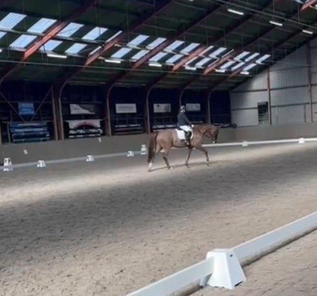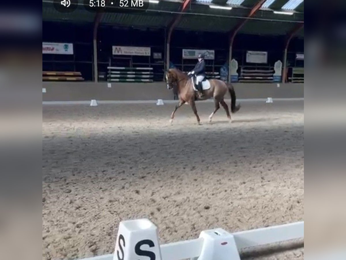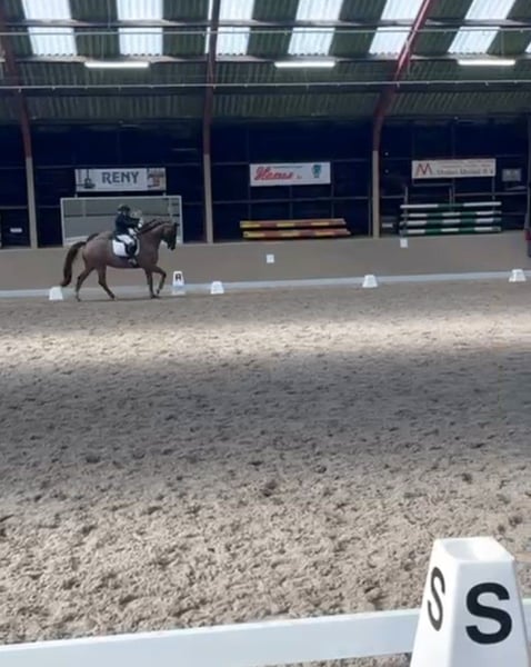 For sale: Stylish KWPN gelding. Born in 2009, dark bay with a height of 16.1 hh. This sweet and honest gelding has three good gaits and is classified at ZZ-light level. Easy to ride, making him suitable for both beginner and ambitious riders/competitors. Pedigree: San Schufro x El Corona. The horse occasionally swallows air. We are happy to provide further information and videos upon request (not always reachable by phone).