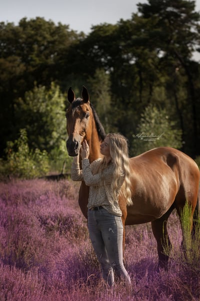 Even een beschrijving over Ceasar: Cee is een 18 jarige kwpn ruin van 1,68 hoog. Hij is een heel lief paard die als hij je eenmaal vertrouwd en kent alles voor je doet. Hij heeft alleen af en toe een beetje een gebruiksaanwijzing. Zomaar opstappen en wegrijden zit er bij hem niet in. Hij heeft wel een zeker persoon nodig die hem helpt bij spanning en hem duidelijkheid en liefde bied. Doe je dit niet blijft hij heel erg in de spanning hangen. Cee word nu recreatief gereden door mij, maar kent oefeningen tot het M. Maar omdat hij ook wat ouder word heb ik het rijden op een lager pitje gezet en is het voornamelijk recreatief rijden en zorgen dat hij soepel en in beweging blijft. Naast het rijden vind hij grondwerk ook erg leuk om te doen. Hij staat mij zeker niet in de weg en hij gaat alleen weg bij 100% goed gevoel vanuit mijn kant. Het is geen paard om mee op wedstrijd te gaan of alleen mee naar het bos te gaan. Hij heeft aan een oog wat minder zicht en sinds kort last van stal benen. Hij heeft hier zelf heel weinig tot geen last van! Verder is het een super sociaal paard en kan ook goed met andere paarden! bij oprechte interesse graag appen naar: 06-41947355
