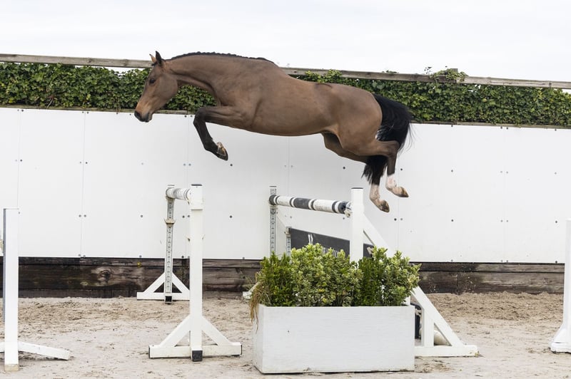 Very beautiful model with a lot of quality and presence. Lightly ridden and shows a good attitude. A horse with a lot of blood, but well-mannered in handling. Sire PEGASE VAN ’T RUYTERSHOF – 1.55m level Modern sire with scope, technique and proven sport genes. Dam AMBER-HIVETTE – no sport results Damline / family Granddam: HIVETTE – 1.30m Further in the line: NAPOLEON – 1.60m PAPILLON ALEZAN – 1.40m MISS HIVETTE – 1.35m ENZO – 1.35m ZENZATION – 1.45m Approved stallions in the line: COMME IL FAUT, CORNET OBOLENSKY, CARTANI, GOODTIMES, NIMMERDOR