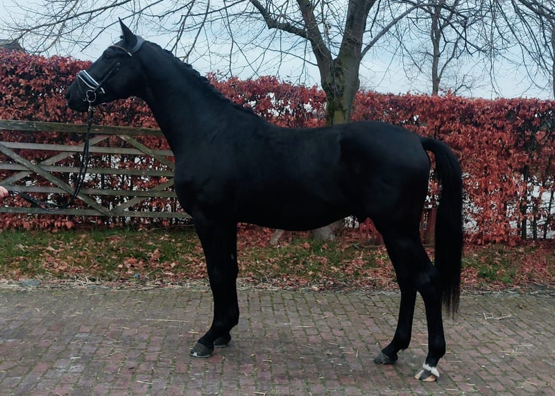 TOPYOUNGSTER by SECRET looking for 5 * HOME : *black *gelding *born 2022 *not saddlebroken *TOP character *3 very good gaits *healthy and NO vices * full set if XRAYs available *FULL brother to approved stallion BWP ( Nashville van de nethe)