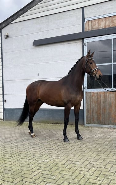 Offered on behalf of the owner: A very well-behaved gelding. Born in 2022. Brown, approximately 16.9 hh (1.70/1.71 m). KWPN Livius (Bordeaux) x Easy Game. A very sweet horse. Well-behaved under saddle, suitable even for less experienced riders or anyone who simply enjoys riding. No vices in the stable. X-rays available. €8,500 negotiable. The horse is located in Kinrooi (B), about 50 km from Aachen and Mönchengladbach. Phone: +31 683 948093 (video available via WhatsApp).