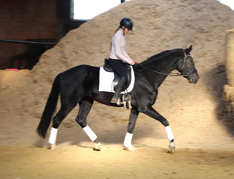 Verkaufe einen beeindruckenden KWPN-Wallach – ideal für den Dressursport! Dieser elegante Rappe wurde im Jahr 2021 geboren und besticht durch sein ansprechendes Erscheinungsbild sowie sein vielversprechendes Temperament. Mit einem Stockmaß von 170 cm bietet er die perfekte Größe für ambitionierte Reiter, die auf der Suche nach einem zuverlässigen Partner für den Dressurviereck sind. Der Wallach überzeugt durch seine gute Grundausbildung, sein angenehmes Wesen und seine Bereitschaft, Neues zu lernen. Er zeigt viel Potenzial für die weitere Ausbildung im Dressursport und ist sowohl für fortgeschrittene Reiter als auch für ambitionierte Nachwuchstalente geeignet. Revel wird weit unter wehrt abgegeben da er koppt Bei Interesse oder weiteren Fragen stehe ich Ihnen gerne zur Verfügung. Vereinbaren Sie einen Termin für eine Besichtigung und überzeugen Sie sich selbst von diesem vielversprechenden Pferd! Weitere Informationen gerne über Wats App 01722734811