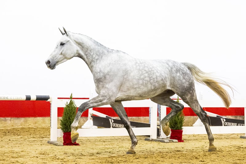 Spike PH è un impressionante gelding grigio di grandi dimensioni. Offre una presenza molto armoniosa e si presenta completo sotto ogni aspetto. È rapido in appoggio, preciso e salta con uno stile sicuro e deciso. Sembrerebbe avere un scope illimitato, unito a leggerezza e un passo ampio e equilibrato. Nonostante il grande passo, riesce a rientrare facilmente dalla staccionata, il che infonde molta fiducia per il futuro sportivo. Nei movimenti si distingue per una scioltezza eccezionale, equilibrio e flessibilità superiori. Il giorno dell’asta, era stato solo leggermente lavorato al circo e non era ancora stato montato. Il proprietario prevede di iniziare il lavoro di messa in sella questa o la prossima settimana, confidando pienamente nel suo carattere collaborativo e disposto. È possibile che a breve sia disponibile un video aggiuntivo. L’allevatore ha scelto consapevolmente un’educazione tranquilla e paziente, permettendogli di svilupparsi fisicamente senza pressioni. Ora che si avvicina ai quattro anni, è il momento giusto per introdurlo ulteriormente al lavoro. Tutto ciò che ha mostrato finora conferma che si tratta di un cavallo con grandi aspettative sportive. Il sire Colestus ha gareggiato fino a 1,60 m a livello Grand Prix, ottenendo piazzamenti sul podio in CSI5* Grand Prix a Parigi, Shanghai e Dortmund. Come stallone, ha prodotto diversi cavalli internazionali di alto livello, come Colestina H (1,60 m), Colmar (1,60 m) e Colettus Cambridge (1,65 m), ed è noto per trasmettere scope, riflessi e uno stile di salto moderno. La linea materna è molto profonda e ampiamente collaudata sia nel salto ostacoli che nel dressage. La damina Infinity è da Elvis Ter Putte, stallone di grande successo a 1,60 m e molto rispettato. Questa linea materna ha prodotto numerosi cavalli da sport che competono a 1,40 m e oltre, tra cui Goldika (1,50 m), Elrino (1,45 m), Kontiki (1,40 m), Kensington (1,40 m) e No Mercy PH (1,40 m). Più a fondo, la famiglia vanta un numero eccezionale di risultati internazionali sia nel salto che nel dressage, a testimonianza della sua resistenza e qualità. Spike PH combina dimensioni, scope, movimento leggero e un pedigree potente, rendendolo un prospetto molto interessante per competizioni di livello superiore in futuro.
