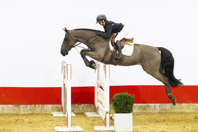 Horse with 1.00m experience. A very suitable amateur horse with a calm character. He tries hard for the rider and gives a comfortable and honest feeling under saddle. Easy to ride, willing at the fence and always trying his best. A reliable partner for riders looking for a genuine and cooperative sport horse.