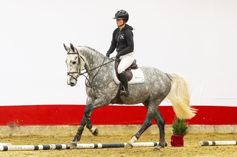 Rapido immediately stood out upon arrival. A beautifully built grey with strong presence. A true Nixon with blood, exactly the type we like to see: quick off the ground, plenty of scope and an excellent attitude. He is suitable for both amateur and professional riders. He has already completed his first courses and clearly shows commitment and willingness to work. He is very easy to ride, which is the advantage of a correctly built horse. In addition, he has a very good character. Not only an eye-catcher, but also a pleasant horse to ride and work with on a daily basis. Anyone who buys this horse will truly enjoy him. Sire Sire Nixon van ’t Meulenhof competed at 1.60m Grand Prix level and is a proven top sire. As a son of Denzel van ’t Meulenhof and out of the renowned Narcotique de Muze IV line (Carthago), he is known for passing on scope, mentality and quick reflexes. His offspring perform at the highest international level. Dam and damline Dam Perlina W (Mr. Blue) competed at 1.40m level and is Elite, sport(spr) and PROK. She produced several sport horses, including: Uranus W (Hornet Rose x Mr. Blue) – 1.30m Dumoulin Z (Diarado x Mr. Blue) – 1.30m Larina (Homerun x Mr. Blue) – 1.30m Joint Venture Z (Xander van de Zeshoek x Mr. Blue) – 1.30m Granddam Gerlina (Pele x Farn) is ster and prestatie and produced, among others: Blue Devil (Mr. Blue) – 1.50m Perlina W (Mr. Blue) – 1.40m Great-granddam Oberlina (Farn x Balthazar) is keur, preferent and prestatie and forms the foundation of an exceptional sport family. This line produced, among others: Olympic Andretti T (Ramiro Z) – 1.60m Kastello (Concorde) – 1.60m, KWPN approved stallion Kwiddanta van de Laarse Heide (Quidam de Revel) – 1.60m Rambo (Concorde) – 1.60m A highly proven damline with multiple international 1.60m horses and approved stallions.