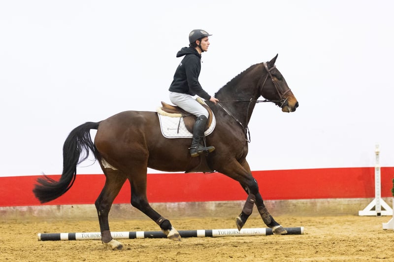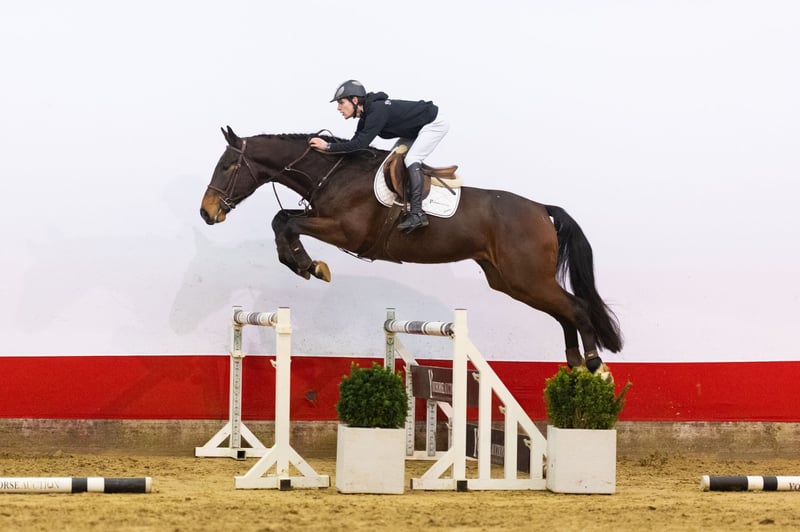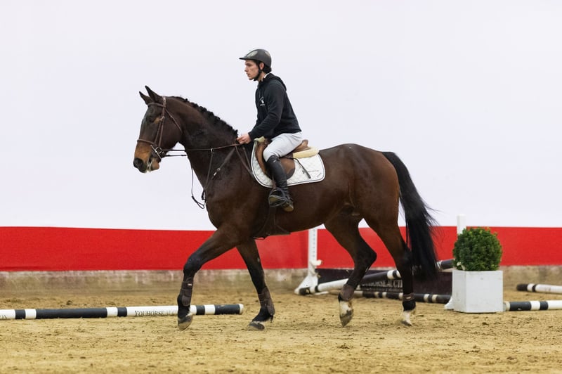 Young sport prospect with attitude, lightness and unlimited scope Ramos W has only just been started under saddle and already shows why he is a very interesting prospect. He is a big horse, yet remarkably light-footed and quick off the ground. He jumps with a very good technique, pulls well to the fence and shows a good attitude. He has quality blood, well balanced, and a very pleasant canter to ride. He canters well from behind to the front and carries the rider easily, which will provide a lot of comfort later on. Ramos W is built uphill, contributing to his rideability. Despite being recently under saddle, he already shows calmness, overview and quality. A very interesting horse for someone looking to develop a young horse towards higher-level sport.