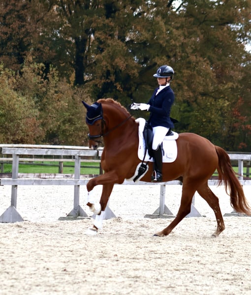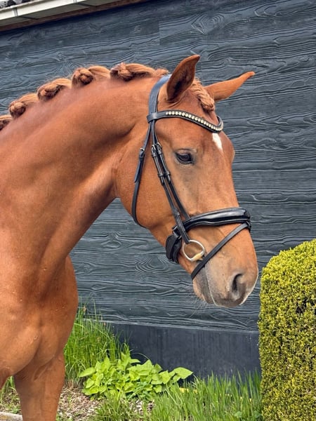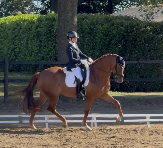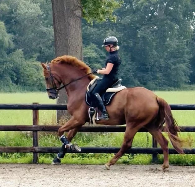 Top, brave, and stunning 5-year-old gelding by Apache x Bordeaux Height: 1.75 m (17.1 hh) This eye-catching horse is very well-behaved under saddle and a pleasure to ride. He has a soft mouth and is comfortable to sit on. The horse is successfully competed at Level 2 and ready for Level M. He has a very friendly character and enjoys attention. He has no stable vices and is fully vetted, including back and neck. For more information, please call: +31 641860053