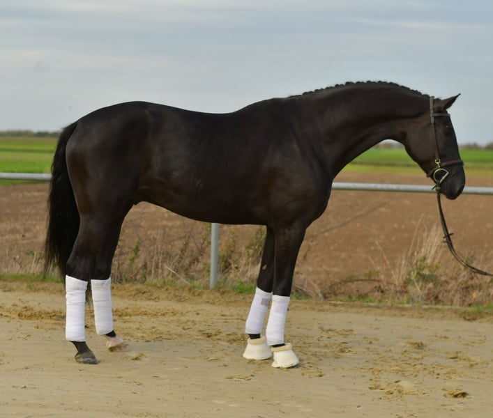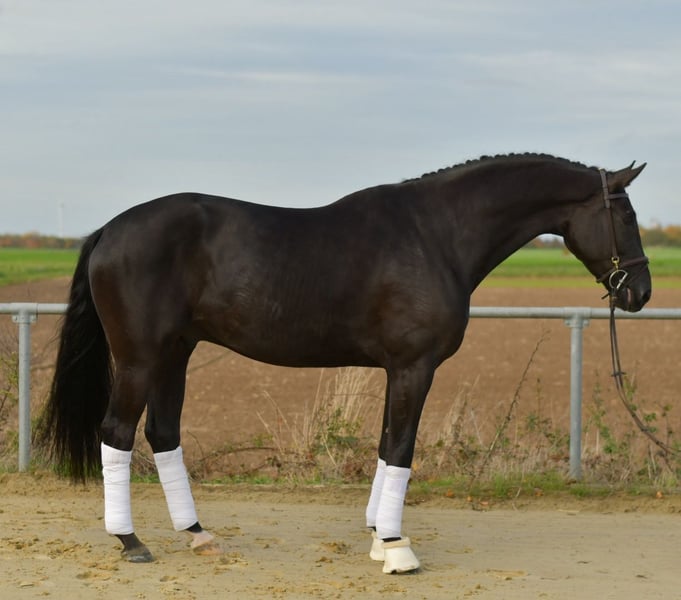 Discover your new dream horse with Pole Position! This impressive offspring of GLOCK'S TOTO JR. and the legendary Opa Totilas captivates not only with its stunning black coat but also with its outstanding and above-average movement quality. Standing approximately 17.6 hh and only 5 years old, he epitomizes the picture-perfect dressage horse. Pole Position is at the beginning of his training and ready to start in the Young Dressage Horse class (L) with just a little work. He impresses not only with his potential but also with a complete health certificate (TÜV) without any findings – a true dream horse for any rider! For those seeking a beautiful horse that can shine both in training and competition, Pole Position is the perfect choice. You are welcome to try riding him or have a test ride – this costs €50 and will be fully refunded upon purchase. If you are searching for the ideal partner for the big arena, look no further. Let yourself be enchanted by Pole Position and experience the possibilities he offers!