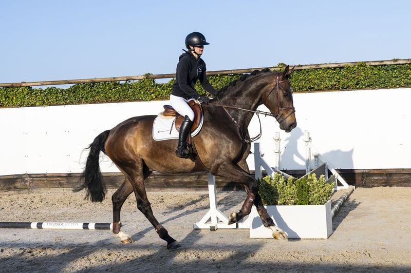 Big strong-built horse with a calm attitude and a nice character. Easy to ride and comfortable under saddle. Well-behaved in handling and picks up the work easily. Shows a consistent way of jumping and is suitable for multiple disciplines. Ready for courses and very suitable for an amateur. Approximately 4 months under saddle. Sire Opium JW van de Moerhoeve – 1.55m level. Son of Kannan GFE (1.60m) and successful at international level with scope and attitude. Dam Cinderella – 1.35m level, daughter of Indorado (1.60m). Damline Granddam Claudia Z – daughter of Caretano Z (1.60m). From this line: Cantona TN – 1.45m, approved stallion Karsten – 1.30m Cloe Newcastle Z – 1.40m Further in the line: CeVin Z – 1.50m, approved stallion Bruce Z – 1.40m Hopes Are High Z – 1.60m Harley VDL – 1.55m, approved stallion Scuderia 1918 Casago – 1.60m, approved stallion Dimitri Z – 1.60m, approved stallion Strong international sport line with proven scope and top-level performance.