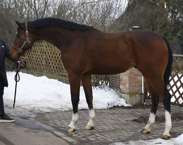Schöner brauner Warmblut mit modernem, athletischem Typ und ausgezeichneter Konformation. Dieses Pferd besticht durch einen langen, korrekten Hals, gut geformte Schulter, starke Oberlinie und kraftvolles Hinterteil. Korrekt gebaute Beine mit attraktiven weißen Abzeichen vervollständigen sein elegantes Erscheinungsbild. Er zeigt einen ruhigen, aufmerksamen Ausdruck und ein freundliches Auge, was ihn im Umgang zu einem echten Genuss macht. Für den Sport gezüchtet, mit einer erstklassigen Springblutlinie, inklusive Chacco-Blue- und Contender-Genetik, bekannt für talentierte, gut reitbare Pferde mit Sprungkraft und Qualität. Perfekt für jemanden, der einen zukünftigen Springreiter oder Sportpferde-Top-Prospekt sucht. Für weitere Informationen über diesen hübschen Kerl kontaktieren Sie bitte per WhatsApp: +36 30 639 24 27.