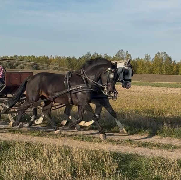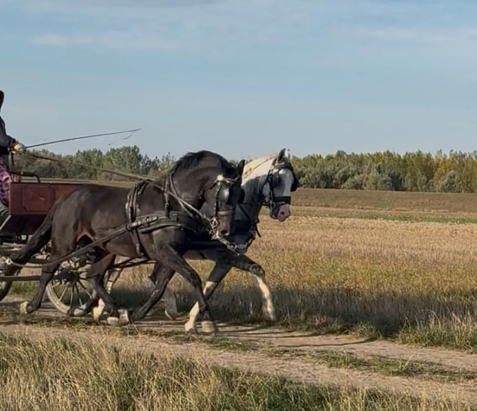 For more information, please contact me on WHATSAPP (0036306800863) or in email (hajagosn92@gmail.com) -158-160cm -5-6 years -talented pair -cooperative and reliable horses -easy to handle them -reliable in traffic and also on the fields -one of them (Bay) goes under saddle too
