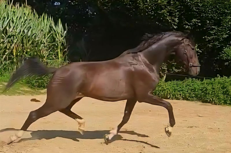 **Sales Advertisement: Dreamy KWPN Gelding for Sale** For sale is an impressive KWPN gelding, born in 2020. With a height of 167 cm and his elegant dark brown coat, he is truly a sight to behold. This talented gelding is well-suited for dressage and already shows promising progress in his training. He has a pleasant, calm demeanor and is very well-behaved both in handling and under saddle. Cassy loads easily into the trailer and remains composed and fearless even in challenging situations. He is ideal for riders looking for a promising partner for dressage, whether in amateur or competition sports. If you are interested or would like more information, please feel free to contact me at 0160/91374063. Videos available via WhatsApp.