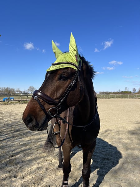 Macho ist ein echtes Familienpferd, das seine Aufmerksamkeit sehr liebt. Er unternimmt gerne Ausritte, sowohl zu Wettkämpfen als auch in der Freizeit. Macho kennt die Übungen bis zur Klasse L2 im Dressurviereck und war zuvor im Springen bis 100 cm erfolgreich. Zudem hat er auch einige Cross-Trainingseinheiten absolviert, die ihm großen Spaß machen. Macho ist absolut zuverlässig, er lässt sich kaum aus der Ruhe bringen und reagiert auf nichts wirklich skeptisch. Damit eignet er sich auch gut für den Übergang vom Pony zum Großpferd. Er ist jedoch nicht für absolute Anfänger geeignet. Macho wird nur an ein 5-Sterne-Haus abgegeben, das viel draußen ist. Er ist sehr sozial, gewöhnt daran, in einer Herde zu stehen, und fühlt sich dort wohl. Seine komplette Geschichte ist bekannt: Wir haben Macho von Leuten gekauft, mit denen wir noch immer guten Kontakt haben, die ihn direkt vom Züchter übernommen haben. Der Verkaufsgrund ist, dass meine sportlichen Ambitionen nicht in diese Richtung gehen, während Macho genau diese Herausforderung sucht. Macho ist stets pünktlich geimpft, beim Tierarzt, Osteopathen und Hufschmied war er regelmäßig. Er macht all das brav und problemlos. Er hat keine Haltungsfehler und ist leicht auf den Trailer oder in den Transporter zu laden. Im November 2023 wurde er klinisch sowie röntgenologisch (inklusive Hals und Rücken) vollständig sporttauglich befunden. Eine Nachkontrolle ist nach Wunsch möglich. Der Verkaufspreis für Macho beträgt 19.500 Euro. Bei passendem Zuhause ist darüber verhandelbar. Bei Fragen oder ernsthaftem Interesse erreichen Sie mich unter folgender Telefonnummer: 06-21180946. Händler und Reitbetriebe bitten wir, von Kontaktaufnahme abzusehen.