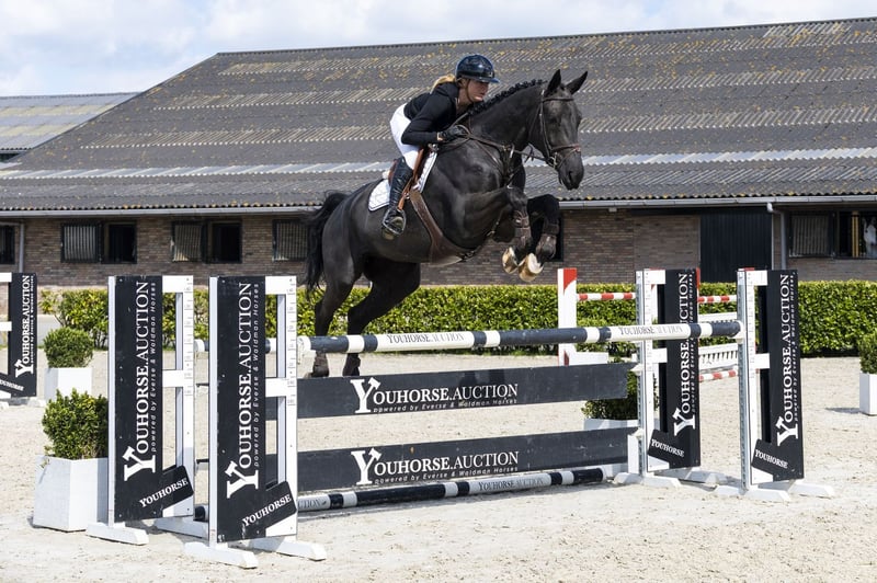 Papillion is ridden at 1.20m level by an amateur girl. He is kind in the stable and well-behaved in handling. Beautiful black horse with a kind expression and a good attitude. Comfortable to ride, responsive to the aids and with a soft mouth. Has a good canter, enough scope and is not spooky. A horse that fits in any ring, suitable for hunter/equitation as well as a young, talented jumper. Sire El Barone 111 Z competed at 1.60m level and comes from Emerald van ’t Ruytershof x Libero H. He passes on scope, technique and attitude and already produces multiple horses at a high level. Dam The dam Zennith competed at 1.30m level and comes from the line of Solitair and Voltaire, which contributes to attitude and rideability. Damline The damline produces multiple sport horses at level, including Kensington (1.50m) as a standout. Furthermore, we see several horses at 1.30m–1.40m level and higher, making this line interesting for both sport and breeding.