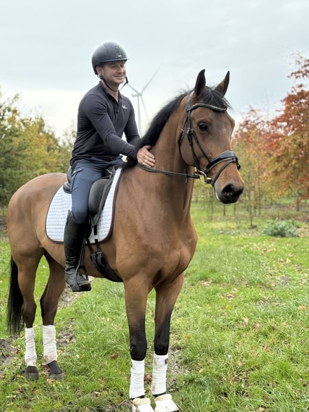 Vous recherchez un jeune cheval fiable, agréable à monter, et de qualité ? Faites la connaissance d’Othello, un magnifique et sympathique hongre de 6 ans, par Franklin x Havidoff, mesurant 172 cm au garrot. Othello a été monté au niveau M et des débuts ont été faits en contre-épaule et appuyements. Il est volontaire, possède un galop très puissant et une attitude facile à la mise en main, ce qui le rend très agréable à monter. De plus, il est brave en terrain inconnu, aime participer à des sorties en extérieur, et se laisse facilement charger, que ce soit dans une remorque ou un van. Il provient d’une lignée maternelle solide, donnant plusieurs chevaux de sport, dont la monture de Grand Prix Cynosa – une excellente base pour l’avenir ! 🔎 La semaine dernière, il a été entièrement radiographié, y compris le dos et le cou – sans aucune remarque. 💫 En résumé : un cheval honnête et agréable, prêt à poursuivre sa formation et à travailler avec plaisir. 💰 Prix demandé : 11 🥕 ⚡ Réponse rapide souhaitée 📍 Intéressé ou souhaitez recevoir une vidéo ? N’hésitez pas à envoyer un message ou à appeler/WhatsApp au +31 6 27 51 47 06.