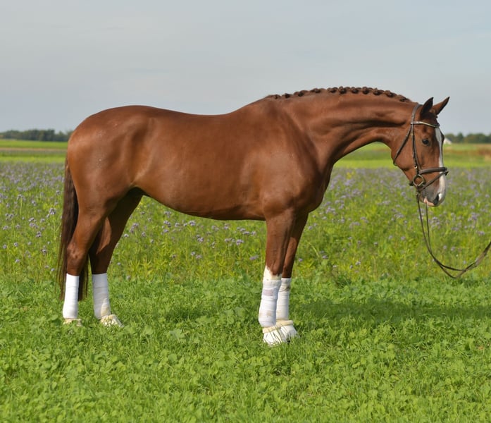 Discover this stunning rough diamond – a dressage horse that captivates not only with its beauty but also with a character that wins all hearts in an instant! Our majestic giant stands at 1.78 m tall and is a true eye-catcher, impressing with its impeccable, top-notch TÜV certification. With three expressive basic gaits just waiting to be refined with a special touch, he is the perfect partner for any dressage rider or even suitable as a vaulting horse. His brilliant white stockings and elegant appearance make him a truly impressive sight. But it's not just his exterior that enchants – this sensitive fellow always wants to please and shows himself from his best side. Come see for yourself and experience him up close! Trial rides or presentations are available for just €30. Don’t miss this opportunity to get to know this unique partner!