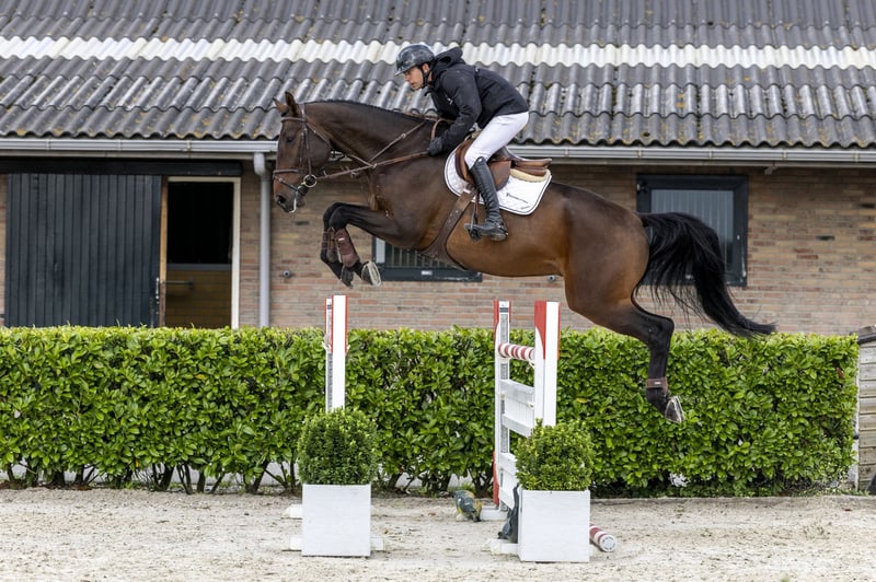The six-year-old O’Gringo is a big horse with an excellent attitude. Without doubt, he is also suitable for an amateur rider. Sire Kallas is ten years old and competing at 1.60m Grand Prix level with Dennis van den Brink. He comes from the same line as the 1.60m Grand Prix horses Un Homme d’Honneur and Zeno H2. Dam is a Hungarian mare by Koppany (Burggraaf) x Gringo (Ramiro Z). She is a half-sister to two horses competing at 1.30–1.35m level.