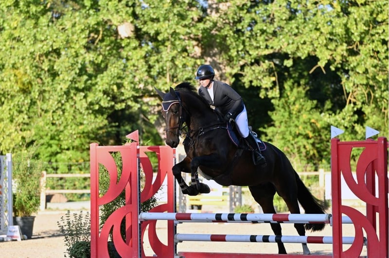 Langbeiniger Sportler mit Vermögen, Springpferde platziert