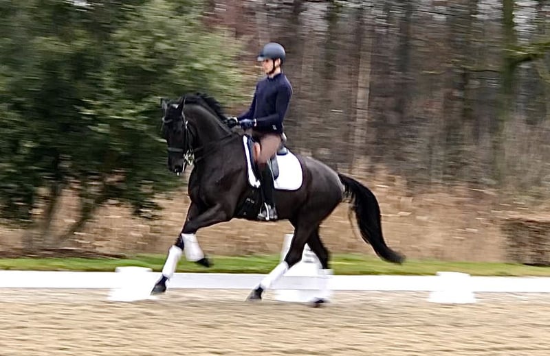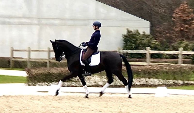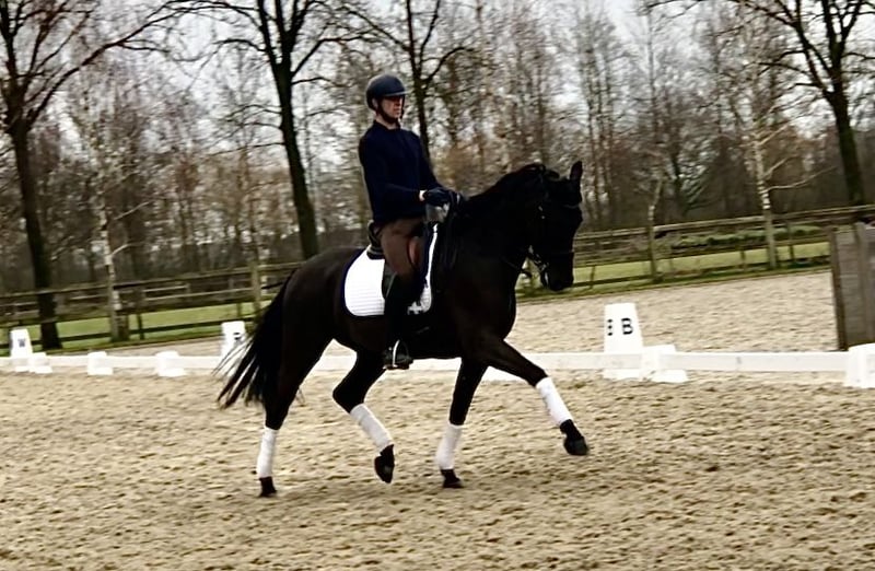 This 6-year-old gelding by Dreamboy is on his way to Grand Prix. A promising transition phase. Three good gaits. Competition experience. Sensitive nature. Requires an experienced rider with a gentle touch. A very sweet horse. Location: Bree, Belgium.
