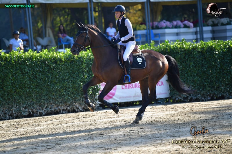 Cavallo in vendita: Norin Kang Norin Kang è un castrato di 7 anni, figlio di Zinedine B x Samurai M, che si distingue nel salto ostacoli per la sua grande capacità, visione e ambizione. Colpisce per la sua alta montabilità e un eccellente feeling di sella – un vero cavallo di fiducia, perfetto per amatori. Nella vita quotidiana è assolutamente semplice e amichevole. Anche nelle competizioni si dimostra sempre forte di nervi, sicuro e impassibile – sia in un ambiente affollato nel campo di riscaldamento che di fronte a un percorso particolarmente creativo. Nori - è vincitore di una prova per giovani cavalli M* - ha 49 partecipazioni nazionali in Germania, di cui 20 piazzamenti - ha anche successo a livello internazionale con piazzamenti - è sicuro nel cross-country, salta senza problemi ostacoli naturali - il fratello pieno "Kathmandau" è piazzato in S** e vincitore internazionale in S* - è adatto a bambini e ragazzi, semplice e gentile nella vita quotidiana e nell'addestramento - lastre radiografiche senza referti Un giovane sportivo con il cuore al posto giusto, chiaro di mente, volenteroso e resistente – pronto per la prossima sfida sportiva! Se siete interessati, saremo felici di ricevere la vostra chiamata – ulteriori informazioni e video disponibili su richiesta.