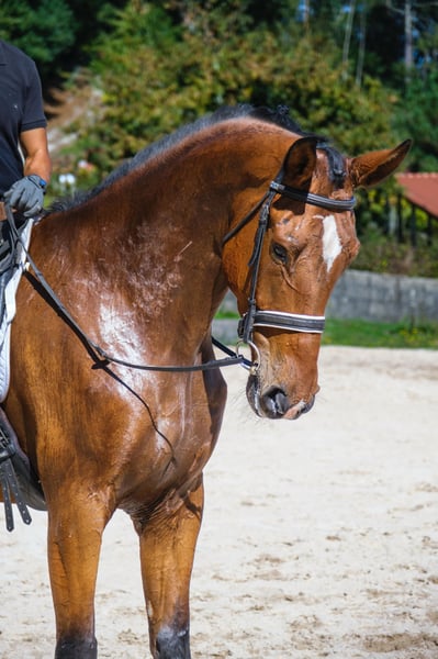 Ejemplar KWPN castaño castrado de 6 años. P. Metall y PP. Ferro (Top sementales KWPN, conocido como la "Perla Negra", Medallista en los Juegos Ecuestres Mundiales de 1998, en el Campeonato Europeo de 1999 y en los Juegos Olímpicos de 2000, montado por Copy van Baalen de los Países Bajos). Este ejemplar KWPN comparte linaje con otros campeones como Uthopia, Rousseau, Negro, Metall y Rhodium. Tiene una línea hermosa, con tipo, talentosa, elegante y de la más alta calidad. La descendencia de Olympic Ferro destaca por sus grandes cualidades para doma, así como por ser buena saltadora. Actualmente Paso, Trote, Galope, Cesiones y espalda adentro. Iniciándose en apoyos. Estuvo cerrero hasta los 5 años en el campo. Aires elegantes y fuertes. Diligente en el trabajo. Venta por motivos personales. Precompra disponible realizado en Enero 2025.