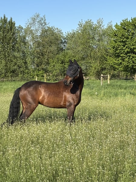 For sale is a healthy 7-year-old KWPN gelding suitable as a leisure horse. Never bitten, never kicked. Compatible with other horses. Shy but very well-behaved in handling. Always very alert when riding. Not suitable for beginners. No problem going out on rides. Loading still needs some reinforcement. Full shoeing. Never been ill. Health certificate can be arranged with your own veterinarian and done at your expense. Teeth checked twice a year. Regularly checked and treated by an osteopath. A new saddle can be purchased for an additional €2000. Fully vaccinated. Unfortunately, we are not the right match, as he is very sensitive and I tend to be more anxious, which he cannot handle. Our characters simply do not match, and neither animals nor humans can be trained to change their nature. Very gentle to ride. Occasionally grinds his teeth under stress, but this has decreased significantly. A calm home with little hustle and bustle and no big competition ambitions would be ideal. Trial ride €30, which will be deducted from the purchase price. Priority goes to the well-being of the horse. The horse is sold with complete accessories (except saddle): Winter blankets Cooling sheet Headcollar Girths / Bandages / Saddle pads Bridle (without bits)
