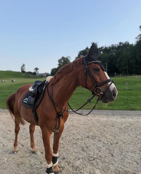 Nobleboy è un castrone KWPN di 7 anni, dotato di tre ottime andature di base e sempre motivato nel lavoro. Ha una genealogia promettente nel salto (Arezzo VDL × Flipper) e dimostra molta qualità in questa disciplina. Attualmente è presentato fino a R/N105 e ha ottenuto successi fino a B/R95 con un'amateur, ma necessita ancora di più esperienza e routine. Nobleboy ha molta energia in salto, ma è molto tranquillo e facile da cavalcare in generale. Nel suo comportamento è molto dolce, affettuoso, amichevole con i bambini e assolutamente affidabile. Quando si esce in passeggiata, si comporta sempre bene. È in buona salute e non mostra alcun difetto comportamentale. Per ulteriori informazioni o domande, non esitate a contattarmi (telefonicamente o tramite WhatsApp: +41 79 841 59 95). Per la prova di monta verranno addebitati 50 franchi, che saranno dedotti in caso di eventuale acquisto.