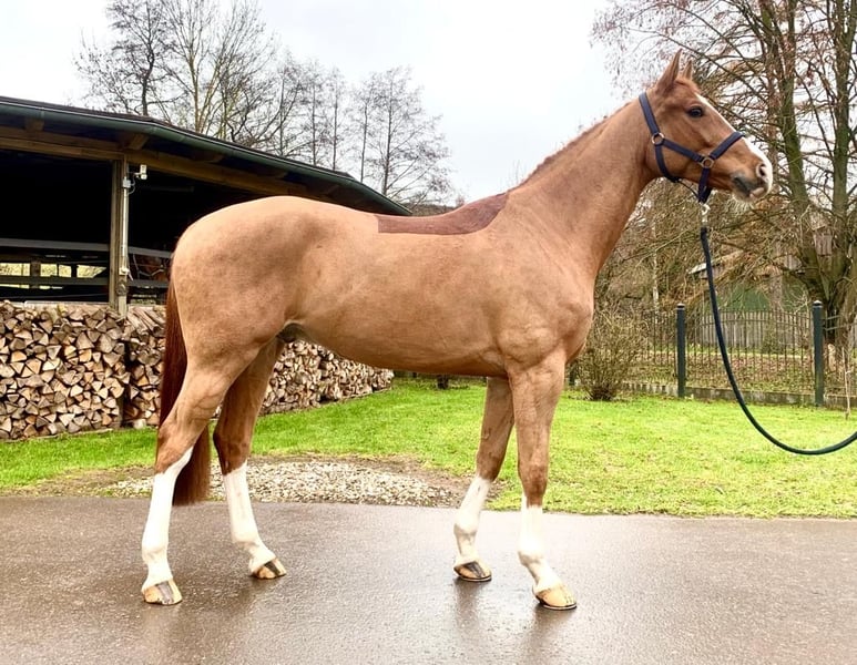 Very eye-catching and beautifully drawn Younster who combines the world-class sires Cornet Obolensky, Stakkato, Contender, Chi Chin, Emilion and many more. At his first tournament starts, he was able to win Sprpf. A** (1.10m) several times and placed second in Sprpf. L (1.20m). He has a very good rideability and has three very good basic gaits. He has a pleasant pull to jump and very good reflexes. He is very well-behaved and very pleasant in his daily work. A top athlete for the coming season. Phone: 49 (0) 171/4605744