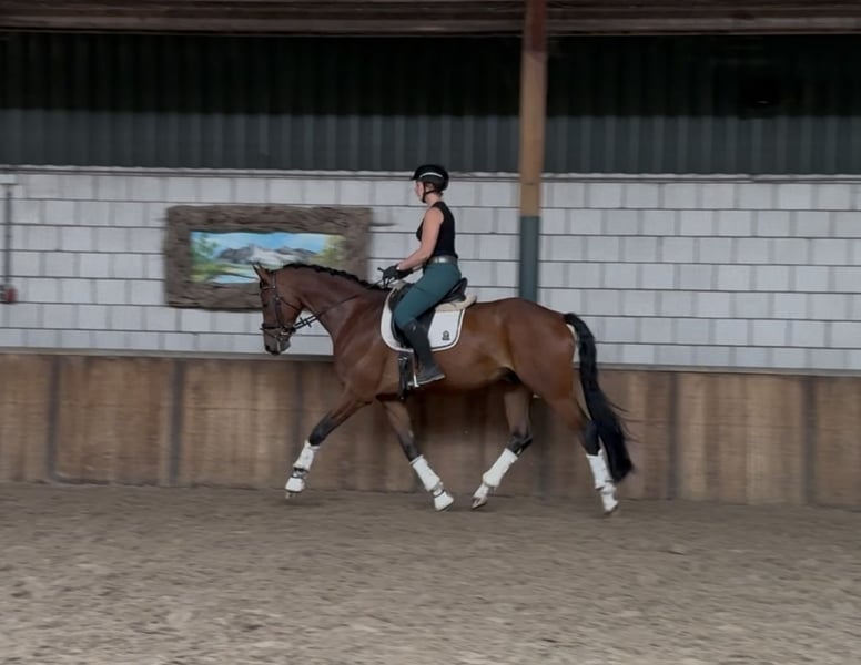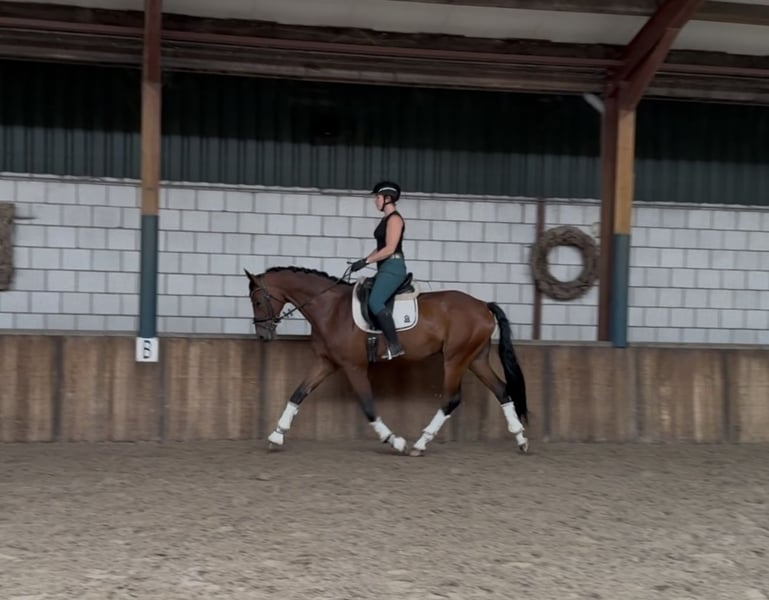 Due to no suitable match with the current owner, this lovely and sweet gelding is being re-listed: A charming and gentle gelding. He stands approximately 1.70 m and was bred KWPN for dressage. Pleasant to ride in dressage, responds well to aids. He is at L-level but has not yet been officially competed. Recently, he also performed a small jump under saddle. He handled it well, has limited experience with jumping but was very well-behaved! He can also go on outdoor rides with others. Always gentle when mounting. Stands quietly. Under saddle, he is not spooky or sensitive. The horse can sometimes whinny (yes, you read that correctly!), which the current owner finds a bit unpleasant. Additionally, he is social with both humans and other horses. When in contact with other horses, he can be vocal and may act a bit proud! (which is normal and natural). According to the owner, he sometimes drops his koker (a kind of lip curl), which we have never seen before! There are videos available of the horse. Clinical examination and X-rays of the hocks show no abnormalities! Old Gastel, NL ☎️ 0031-610197456