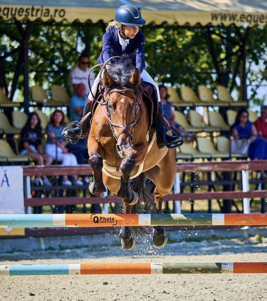 Mr. Soup 🥣 ☀️ Idextro x Lancelot ✨Gelding, 1.65 m, KWPN, 9 years old, born 01.05.2017 Romanian children team at 2024 European Children Championship – Peelbergen (1.30 m) International experience CSICh (Zduchovice, Linz, Samorin, Peelbergen) Multiple Top 3 placings (Children, Juniors, Young Riders): 1.30 m, 1.20 m, 1.10 m 🌟Produced and ridden only by the child rider who participated in the European Championship. 🌟With experience and Top 3 placing in eventing and working equitation, Mr. Soup is a very brave, competitive horse, fast, extremely easy to turn, and naturally a winner. 🌟Well educated, responds immediately to any aid, powerful with plenty of scope, perfectly healthy (no medical issues since we purchased him at 4 years old). 🌟Horse suitable for children / beginners / amateurs up to 1.00 m. Goes impeccably without corrections. 🌟Above this level, a more experienced rider, or a calm, confident rider with distances is needed. He forgives the first mistake (first effort), hesitates at the second — which is the reason we are selling him. 🌟Not spooky at jumps, fillers, or water (liverpool). Never runs out. 🌟Kind, gentle character, used to hacking, transport, clipping, shoeing, grooming, etc. 🌟A horse who fulfilled my daughter's dream to be in the children national team at European Championship Kronenberg/Peelbergen 2024. 🌟He will surely bring joy to every rider! But, with a match rider, he can shine again in big classes! He is placed at Animo Ranch Club near Bucharest, and can be tested on a prior appointment. More details, price, pictures, movies , appointment in private or whatsapp only:+40724313488