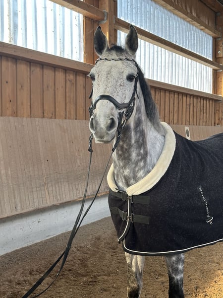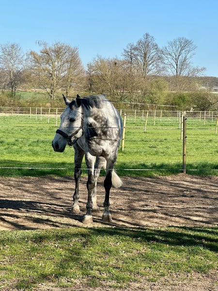 For sale is our friendly and well-behaved gelding Cassi. Cassi always wants to please and tries to do everything right. However, he is quite forward under saddle, so he is not ideally suited for beginners. He performs beautifully in dressage, is calm in the outdoor, both alone and in a group, and enjoys pole and cavaletti training. Jumping higher fences is not his forte, though. He loads alone without issues and is absolutely well-behaved during off-site training and at the vet. A recent health check with X-rays is available. We are looking for a home with a family environment and someone who appreciates his friendly, trusting nature. He is being sold for personal reasons only to someone with horse experience and in the best hands. Currently, he is in training and on a lease on the Swabian Alb for personal reasons. He can be tried after arrangement.
