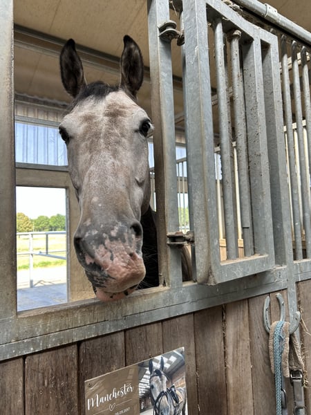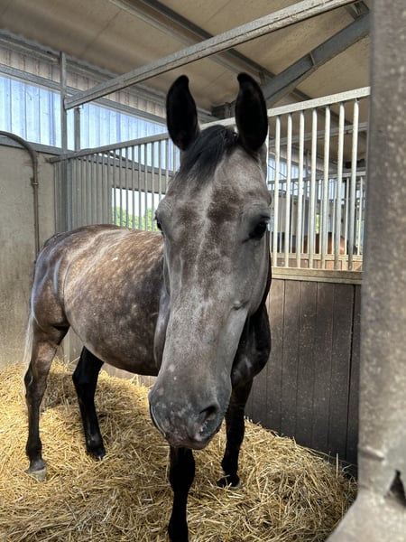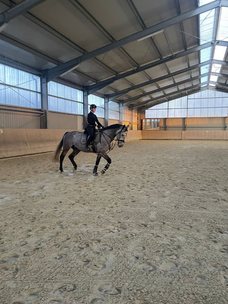 Zum Verkauf steht ein imposanter 8-jähriger KWPN-Wallach mit einem Stockmaß von 1,74 m. Dieser Schimmel besticht durch sein modernes Exterieur, seine Präsenz und seinen Arbeitswillen. Abstammung • Vater: Mr. Blue – international anerkannter Vererber für Springqualität, Vermögen und Intelligenz • Mutter: Prisma (STB) • Muttervater: Capitol I – einer der bedeutendsten Springpferdevererber seiner Zeit die ein talentiertes und modernes Sportpferd suchen. Charakter & Umgang Vom Boden aus zeigt er sich sehr brav, aufmerksam und kooperativ. Unter dem Sattel benötigt er jedoch einen erfahrenen, einfühlsamen Reiter, der ihn klar fördert und ihm Sicherheit bietet. Für Anfänger ist er nicht geeignet. Chester geht lieb ins Gelände alleine und in der Gruppe Gesundheit Im Sommer hatte er eine kleine Verletzung an der Zunge, die genäht wurde, aber vollständig und ohne Einschränkungen verheilt ist. Schmied: lieb und unkompliziert. Verladen: braucht etwas Überzeugung, geht aber zuverlässig auf den Anhänger. Er wurde noch nicht auf dem tunier vorgestellt Ich gebe ihn nur an , da wir einfach nicht zusammen finden … derzeit wird er von einem jungen Mädchen in der Dressur weiter gefördert … Im Springen ist er noch sehr unerfahren ( ich bin kein Springreiter /springe selber nicht gerne ) Deswegen ist er am Sprung nicht wirklich gefördert Laut Aussage meiner damaligen RB wird er am Sprung sehr stark und flott und will deutlich auf die andere Seite , ist aber leider teilweise noch unkontrolliert