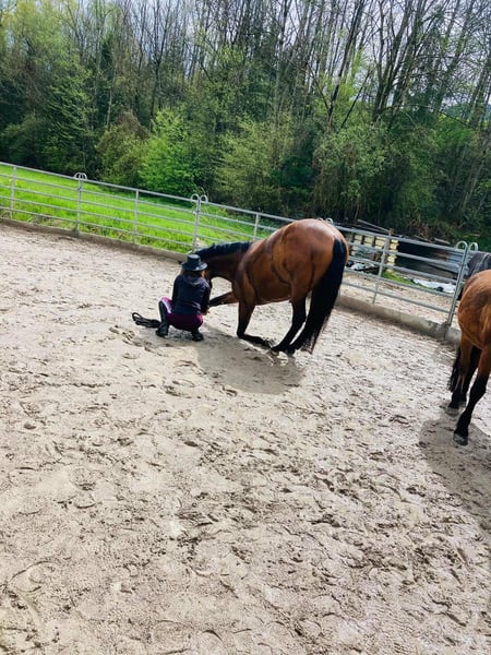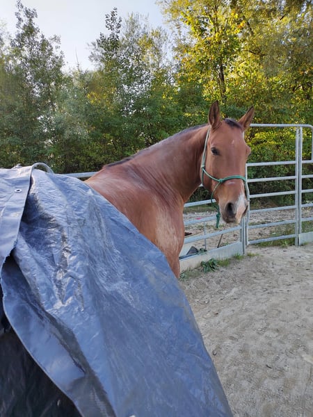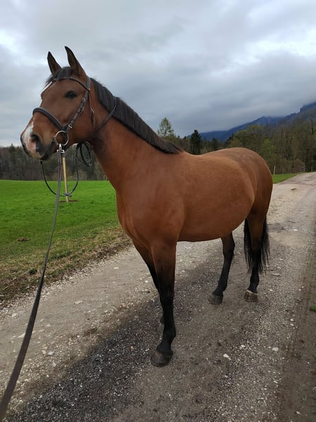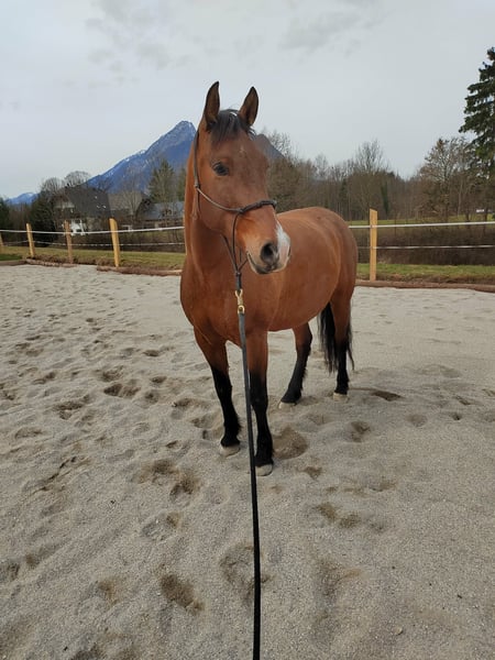 Wegen Pflegefall in der Familie suche ich für meinen Leonharder Wallach (F2) ein neues, liebevolles Zuhause, da ich ihm zeitlich mit zwei kleinen Kindern dazu, einfach nicht mehr gerecht werde. Er wird nur abgegeben, wenn es wirklich passt, da er mir sehr am Herzen liegt. Kein Notverkauf! Nantano ist ein liebes und umgängliches Pferd, benötigt aber eine konsequente und ruhige Bezugsperson mit klarer Körpersprache, da er sonst unsicher werden kann, für Anfänger daher nicht geeignet. Er ist ein charakterstarkes Pferd, mittel- bis ranghoch, der schon mal probiert, seine Grenzen auszutesten und nachfragt, ob man es ernst meint. Wenn man ihm die nötige Sicherheit bietet und ihn abwechslungsreich arbeitet, ist er ein toller und motivierter Partner. Vor allem die Bodenarbeit macht ihm großen Spaß. Generell ist er Fahrzeugen aller Art, Geräuschen und Kindern gegenüber unerschrocken, vor allem im Winter kann er aber schon mal übermütig sein und zur Seite springen beziehungsweise umweltorientiert sein, wenn er nicht ausreichend ausgelastet ist. Grundsätzlich ist er entspannter, wenn ein zweites Pferd dabei ist. Er ist vielseitig gearbeitet worden, Dressur in der Bahn, kleine Sprünge auf der Springwiese und am Platz, (Frei-)Arbeit im Roundpen, Bodenarbeit, Zirkuslektionen, Ausritte (hauptsächlich zu zweit), Spaziergänge (auch alleine), Wandergaul und ab und zu Kurse sind ihm bekannt. Wir haben ihn mit 1,5 Jahren direkt vom Züchter übernommen, Lebenslauf ist lückenlos bekannt, Bilder sind bis ins Fohlenalter vorhanden (war Goldprämienfohlen). Er ist voll reitbar und war bei uns noch nie ernsthaft krank oder verletzt. Momentan ist er nicht voll im Training und wird nur ab und zu geritten. Derzeit lebt er im Offenstall, er kennt aber auch Paddockbox mit tagsüber Auslauf in der Gruppe. Generell ist er rassebedingt eher auf der leichtfutterigen Seite, hier muss man aufpassen, dass er bei zu wenig Bewegung nicht zu dick wird. Mit anderen Pferden ist er unkompliziert und ein freundlicher Typ, wenn auch eher in der Chefposition. Nantano ist Barhufgänger und brav beim Schmied, regelmäßig entwurmt, gechipt und geimpft (Tetanus und Influenza, zuletzt Februar 2026). Zähne wurden im Oktober 2025 frisch gemacht, ebenso wurde er im November 2025 der Tierphysiotherapeutin vorgestellt. Zwischendurch durfte er auch zwei Sommer auf der Winklmoosalm verbringen, die er sehr genossen hat. Über ernstgemeinte Anfragen freue ich mich, genauere Informationen und Videos können nach einem ersten Kontakt gerne übermittelt werden. Um Reittourismus vorzubeugen, wird für das Probereiten eine Gebühr von 25,- erhoben. Ein hochwertiger, an das Pferd angepasster Custom Dressursattel kann mit erworben werden. Platz vor Preis!