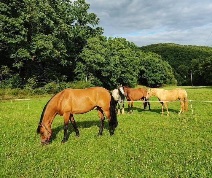 **** IM AUFTRAG ZU VERKAUFEN **** Leonhard's Nike - Vielseitiges und wunderschönes Reitpferd für ambitionierte Reiter! 10-jähriger, 155cm großer Leonharder Wallach (PRE x Welsh-D/Haflinger) mit voller Abstammung V: Naviero (Pura Raza Espaniol) M: Vanessa (Welsh D / Haflinger) in der schicken Sonderfarbe Braunfalbe mit Mega Schweif und Mähne! Er war ein Prämienfohlen! NIKE beeindruckt sofort durch seine starke Präsenz und Aufrichtung. Im Umgang sehr gut erzogen und dem Menschen zugewandt, begeistert er unter dem Sattel durch seine natürliche Versammlung und angenehme Bewegungsfreude. Er ist solide in der Dressur bis Klasse L ausgebildet und läuft routiniert auf dem Platz und in der Reithalle. Das große Viereck wartet nun auf ihn, wobei er auch im Bereich Working Equitation viel Talent & Freude zeigt. Ein tolles Pferd zum Spaß haben und trainieren. Um konzentriert und gehorsam zu Arbeiten benötigt NIKE die Anwesenheit von anderen Pferden. Er kennt es auch alleine spazieren zu gehen oder auszureiten, gerät hierbei jedoch schnell aus seiner Komfortzone und wird deshalb bevorzugt in der Gruppe ausgeritten. Aktuell ist er in professionellem Geländeberitt und erweitert seine Fähigkeiten in diesem Bereich. Auch im Bereich Springen wurde NIKE bereits geschult und zeigt Mut & Ehrgeiz. Dazu hat er sich bereits als braves Schulpferd bewiesen und zeigt durchaus Freude in der Abteilung geritten zu werden. Turniererfahrung im Bereich Springen und Führzügel hat er auch. Einige Zirkuslektionen kann er ebenfalls, wie z.B. den Spanischen Gruß. Hier steht ein absolut vielseitiges und wunderschönes Pferd zum Verkauf! Perfekt für Wiedereinsteiger, ambitionierte Dressur und Springreiter oder erfahrene Freizeitreiter! *** VIDEOS und weitere Bilder/Infos gerne über Whats App 01778787640 *** NIKEs drei sehr gute Grundgangarten lassen sich super bequem sitzen, den Galopp kann er sehr langsam und gesetzt springen. Seine Anlehnung ist fein und macht dem Reiter Freude beim Abrufen der gelernten Lektionen. Da er spanisches Temperament mitbringt, sollte man sicher im Sattel sitzen und keine Angst beim Reiten haben. **** www.handmade-horses.de **** ✔️ Geritten bis Klasse L (Dressur) ✔️ Geländesicher in der Gruppe ✔️ Wiedereinsteiger / Fortgeschrittene ✔️ Gewichtsträger ✔️ Gesund ✔️ Geimpft (Tetanus & Influenza) und Entwurmt ✔️ Volle Papiere und Equidenpass ✔️ Schmiede- und Verladefromm ✔️ incl. gesamten Equipment (Springsattel, Trense, Decken,... usw.) Eine Ankaufsuntersuchung kann gerne im gewünschten Umfang in Auftrag gegeben werden. Kennenlernen & Probereiten (50 Euro je Termin), Transport ins neue Zuhause,... nach vorheriger Absprache und gegen Übernahme der Kosten gerne möglich! NIKE ist bestens sozialisiert (rangmittig), schmiede- und verladefromm, aktuell barhuf, Tetanus/Influenza geimpft, kennt Boxenhaltung, Offenstall und Weidehaltung. Top Gesundheit, keine Krankheiten oder Verletzungen. Die Besitzerin möchte dieses wundervolle Pferd aus privaten Gründen verkaufen und sucht bevorzugt ein förderndes Zuhause für ihn. Bitte bei ehrlichem Interesse bei mir über Whats app 01778787640 melden.