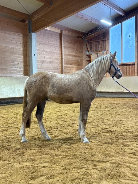 For sale is a stunning Leonharder stallion from the F2 generation, born in 2024. This elegant Palomino impresses with his friendly nature and attractive appearance. Standing at a current height of 14.3 hh, he is perfectly suited for leisure riding and convinces with his versatility and gentle temperament. Quefiro has been raised appropriately in a herd and is familiar with the veterinarian and farrier. The young stallion is well-prepared for everyday life and looks forward to meeting his new family. Whether for cuddling, walks, or simply as a loyal companion – this Leonharder is an ideal leisure partner. If you are interested and would like more information, please do not hesitate to contact me. Visits and introductions are available by appointment.