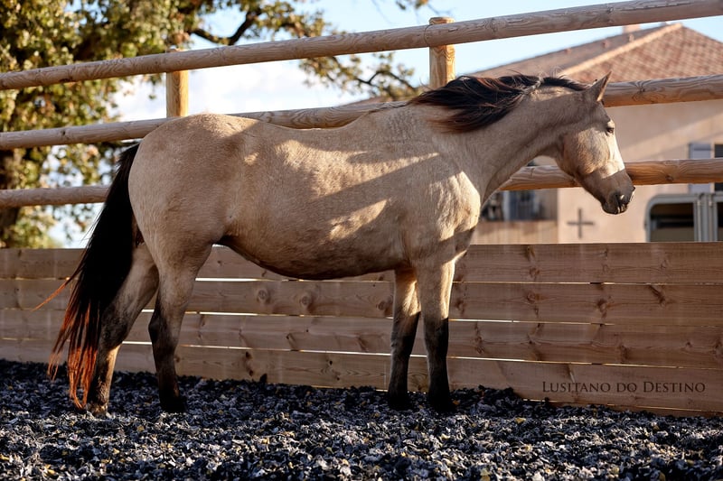Très belle jument pur sang Lusitanienne. Approuvée à la reproduction ✅ Tous ses poulains sont proche de l’homme et très beaux. Code génétique 🧬 Aa / Ee / Cr (elle peut faire toutes les couleurs selon l’étalon). Disponible dès maintenant. Non pleine pour 2026. Possible de la faire saillir par un jeune PSL grullo.