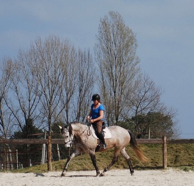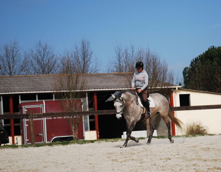 Uranie wurde im Alter von drei Jahren ohne besondere Schwierigkeiten angeritten. Sie zeigt schöne Gänge, die sie von ihrem Vater Impala des Frettes geerbt hat, der im Grand Prix der Dressur startete. Angenehm unter dem Sattel, schätzt sie die Arbeit und Ausritte ins Freie. Ihr Herdeninstinkt erfordert eine Umgebung mit anderen Pferden. Sie lebt das ganze Jahr über im Offenstall mit Unterständen zusammen mit ihren Artgenossen, ein Leben im Stall würde sie nicht ertragen. Diese Stute wäre für einen bereits erfahrenen Reiter geeignet. Der Preis versteht sich netto, die Mehrwertsteuer beträgt 10% für Pferde, die zur Zucht bestimmt sind, und 20% für andere.