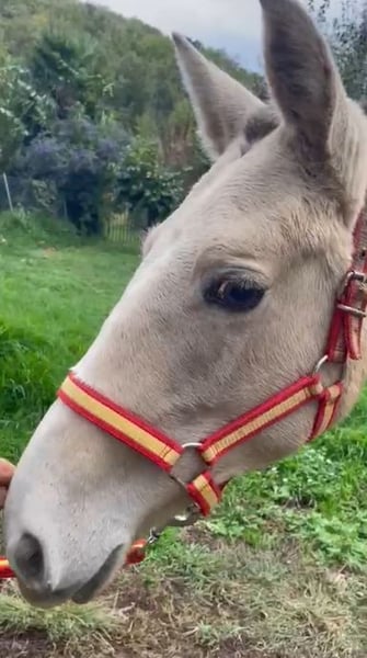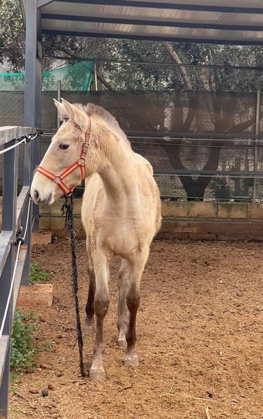 Abril ist eine 11 Monate junge Cruzado-Stute mit barockem Typ. Aktuell misst sie ca. 135 cm und wird voraussichtlich nicht größer als etwa 160 cm. Sie ist sehr verschmust, menschenbezogen und freundlich. Im Umgang zeigt sie sich offen, ruhig und neugierig. Sie sucht gerne Nähe und fühlt sich schnell wohl. Optisch hat Abril einen schönen, klaren Kopf mit leichter Blesse, großen hellen Augen sowie braunen Beinen und Mähne ( Sie trägt 1 Pearl Gen ). Insgesamt wirkt sie harmonisch und angenehm im Ausdruck. ( kräftige Beine + barocker Körperbau ) 📄 Papiere: Eine CDE-Eintragung ist gegen Aufpreis möglich. Abril ist eine unkomplizierte junge Stute mit gutem Charakter und schöner Ausstrahlung, die sich für ein liebevolles Zuhause und eine spätere Ausbildung eignet.