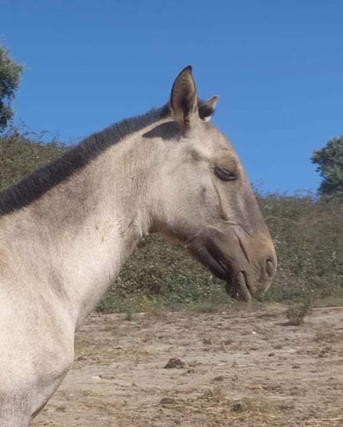 Unsere Tara haben wir wegen ihrer sehr speziellen Farbe angekauft. Da sie für unsere Zucht jedoch zu klein bleibt, steht sie zum Verkauf. Sie kennt die Longe und ist halfterführig. Die stark ausgeprägten Wildabzeichen, der dunkler gehaltene Kopf, einfach ein Traum. Tara ist genetisch sehr interessant: A/a, E/e, CR/n, nd1/nd1, D/n Auf dem letzten Foto ist der Vater zu sehen, das Video ist aktuell. Da ich meine Farbzucht in Spanien aufgebaut habe, kann man Tara in Malaga besuchen.
