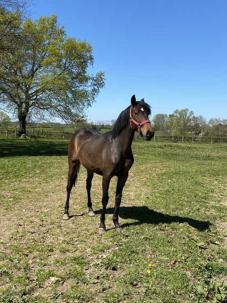 Uva pouliche pur sang lusitanienne PP née le 27/04/2024,bai, très bon mental, proche de l’humain,facile à la manipulation et est en ordre de tout; Elle a un physique plutot sportif et elle devrait faire à l'âge adulte 1,55-1,60m. Elle montre des allures plutot aériennes avec un trot de très bonne qualité! 🟢 Papiers en ordre stud-book PT & FR et IFCE 🟢 Sa mère est visible chez nous et j'ai des photos de son père et d'un demi-frère 🟢 Possibilité de transport & de la conserver à l'élevage avec nos autres juments jusqu'à l'âge de son débourrage à tarif intéressant Tarif actuel : 8000 TTC