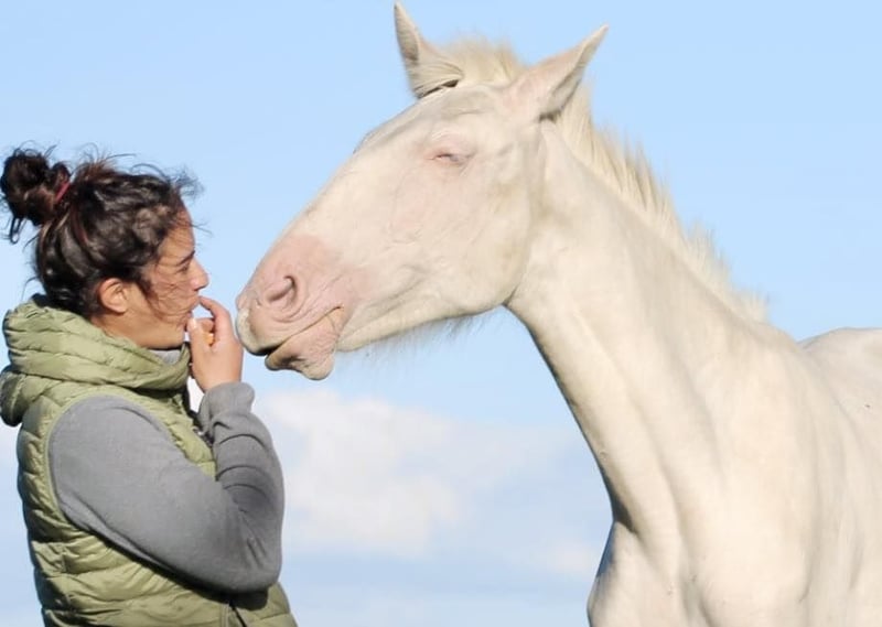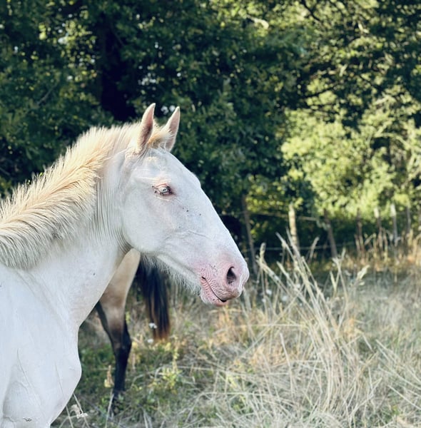 Ma douce Theia cherche sa famille 💛 Theia, PSL, magnifique pouliche double crème de bientôt 3 ans (avril 2024), est un véritable cœur à prendre… J’envisage de la proposer à la vente uniquement dans le cadre d’un projet respectueux de mes valeurs. Mon souhait est avant tout de lui offrir la possibilité de rencontrer un humain capable de lui consacrer davantage de temps, de présence et d’opportunités d’apprentissage que je ne peux actuellement lui offrir. C’est la seule et unique raison de cette décision. 🌿 Son tempérament Theia est une jument curieuse, volontaire et intelligente. Elle a besoin d’un lien de confiance solide et sincère pour s’épanouir pleinement. 🐴 Vie au quotidien et manipulation Elle vit au pré, en troupeau, plutôt dominée, joueuse et très sociable. Elle est à la maison depuis plus d’un an ; elle a tout découvert calmement avant de rejoindre le troupeau des juments. Elle connaît la douche, la longe, donne les pieds et est manipulée régulièrement. ✅ Santé et soins à jour Theia est suivie avec régularité : Maréchal Vaccins Vermifuges Ostéopathe Dentiste 🧬 Informations génétiques Double crème, potentiellement sur base noire (à confirmer) Testée négative au gène gris (test réalisé au Portugal) 🎯 Pourquoi cette vente ? Je souhaite aujourd’hui me recentrer sur le travail de dressage de mes juments. Dans ce contexte, je ne peux plus accorder à Theia le temps qu’elle mérite pour continuer à évoluer. Je suis allée avec elle là où je le souhaitais en termes de manipulation, et je suis convaincue qu’elle fera le bonheur d’un humain doux, engagé et respectueux. 🌸 Le profil que je recherche pour elle Je cherche pour Theia une personne douce, patiente, bienveillante, et surtout dépourvue de toute forme de violence 😬 Quelqu’un qui saura : lui accorder du temps respecter son rythme créer un lien fondé sur la confiance et la communication Ces critères sont non négociables. Theia a besoin de calme, de respect et de présence régulière. Je suis convaincue qu’elle sera une formidable jument pour un(e) cavalier(e) souhaitant évoluer dans une relation de vie, basée sur la compréhension et le lien avec son cheval. 📩 Vous vous reconnaissez ? Si vous êtes cette belle âme prête à construire une relation sincère et durable avec elle, je serai ravie d’échanger. Je ne répondrai qu’aux sollicitations sérieuses, avec une motivation claire et un projet réfléchi.