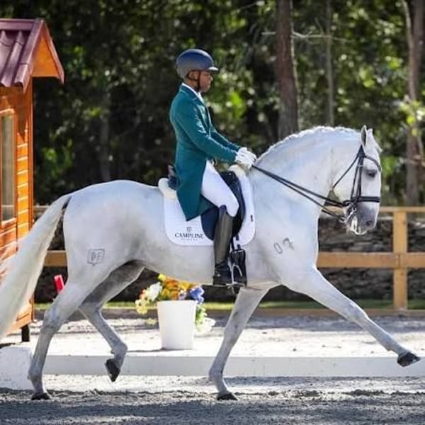 Hija de Fogoso y nieta de Califa. WhatsApp 0034 606330090 **Hermosa y prometedora yegua Lusitana en venta** Presentamos una elegante y prometedora yegua Lusitana, nacida en 2022, que combina belleza, carácter y potencial para la doma clásica. De alzada 163 cm, esta torda destaca por su porte equilibrado y su presencia imponente, perfecta para jinetes que buscan una compañera de confianza y con futuro en la disciplina. Desde temprana edad, ha sido bien manejada y está en proceso de aprendizaje en doma clásica, mostrando buen carácter y disposición para avanzar en su entrenamiento. Su carácter tranquilo y su inteligencia hacen que sea una yegua muy fácil de manejar y de montar, ideal tanto para jinetes en desarrollo como para profesionales que deseen formar a una futura estrella en la disciplina. Su linaje y conformación la convierten en una candidata excelente para competir en niveles altos o para disfrutar en la doma de forma recreativa. Además, su belleza y presencia en el ring la hacen destacar en cualquier entorno. Si buscas una yegua Lusitana con potencial, bien educada y con un futuro brillante en la doma clásica, no dudes en contactarnos para más información y concertar una visita. --- ¿Te gustaría que añada algún detalle adicional o alguna especificación más?