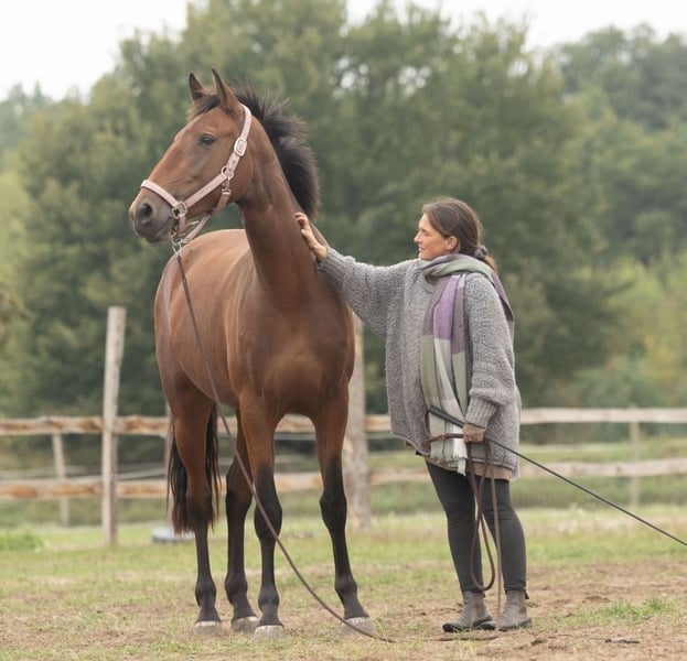 Location: near Ludwigsfelde (Berlin) Incredibly talented Lusitano mare with great potential seeking her perfect person. She is 3.5 years old, currently 16.2 hh and very robust in build. She arrived directly from Portugal from a breeder who owns 2,000 hectares of land and knew nothing about horses. Here, she was gently introduced to training at her own pace, quickly gained trust, and discovered a real joy for work. She is familiar with free jumping, trail riding, lunging, and the hustle and bustle of dogs or children, and these activities are now second nature to her. Her first riding attempts have been successful, as if she had been doing it forever. We mainly train her casually in the outdoor, as this brings her the most joy and she associates it with positive experiences. She learns an incredible amount of trust and external influences here. She is currently being further trained, and she can happily remain in work with paid training if desired. She exhibits beautiful movement and has enormous potential for more. She is very intelligent and learns extremely quickly. She gets along well with other horses, naturally. We are looking for a wonderful home where she can continue to be supported and where someone empathetic, willing to explore the world with her, will take her in. Unfortunately, not all horses can be kept in training long-term. She truly is a dream horse through and through. Additionally, she has an excellent pedigree, full Lusitano papers, and comes with her Blue Book.